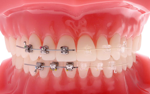 These braces consist of the traditional metal wires and ceramic or porcelain brackets. Ceramic brackets are the same shape as modern metal brackets, but they are less noticeable because they are tooth-colored or clear colored, which matches and blends in with the smile better. They are less noticeable and are often used on adults.